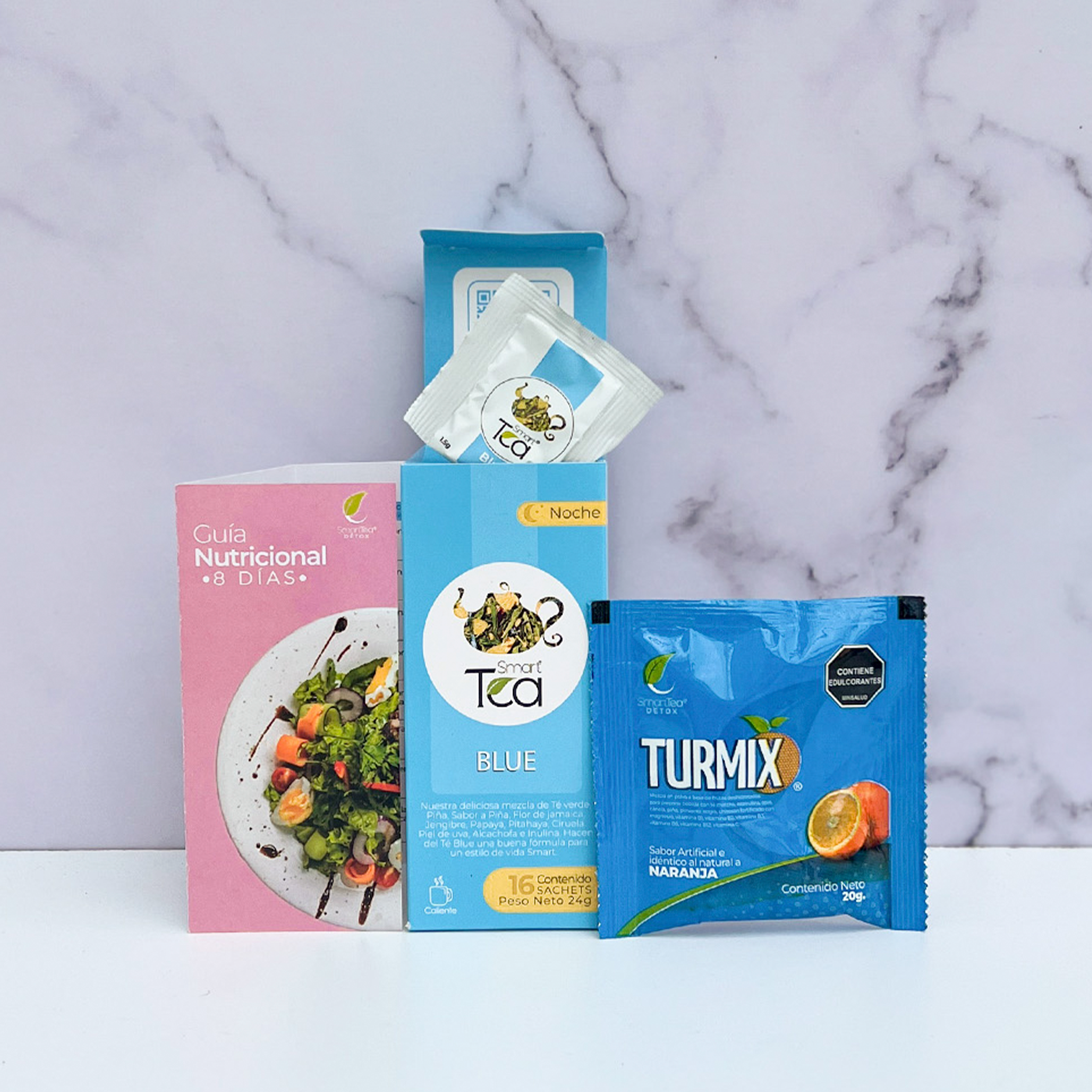 El SmartTea® Blue es una fórmula nutracéutica con propiedades detoxificantes y regeneradoras para el organismo, especialmente diseñado para apoyar la digestión, el metabolismo y la salud intestinal.